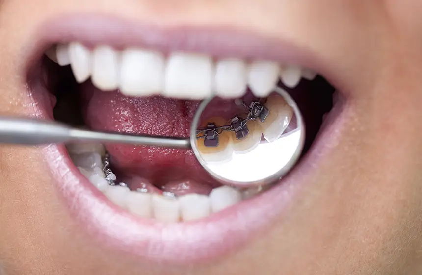 L’orthodontie linguale implique la fixation d’attaches orthodontiques du côté interne des dents, près de la langue, suivant les mêmes principes que les techniques classiques avec des attaches sur la face externe.